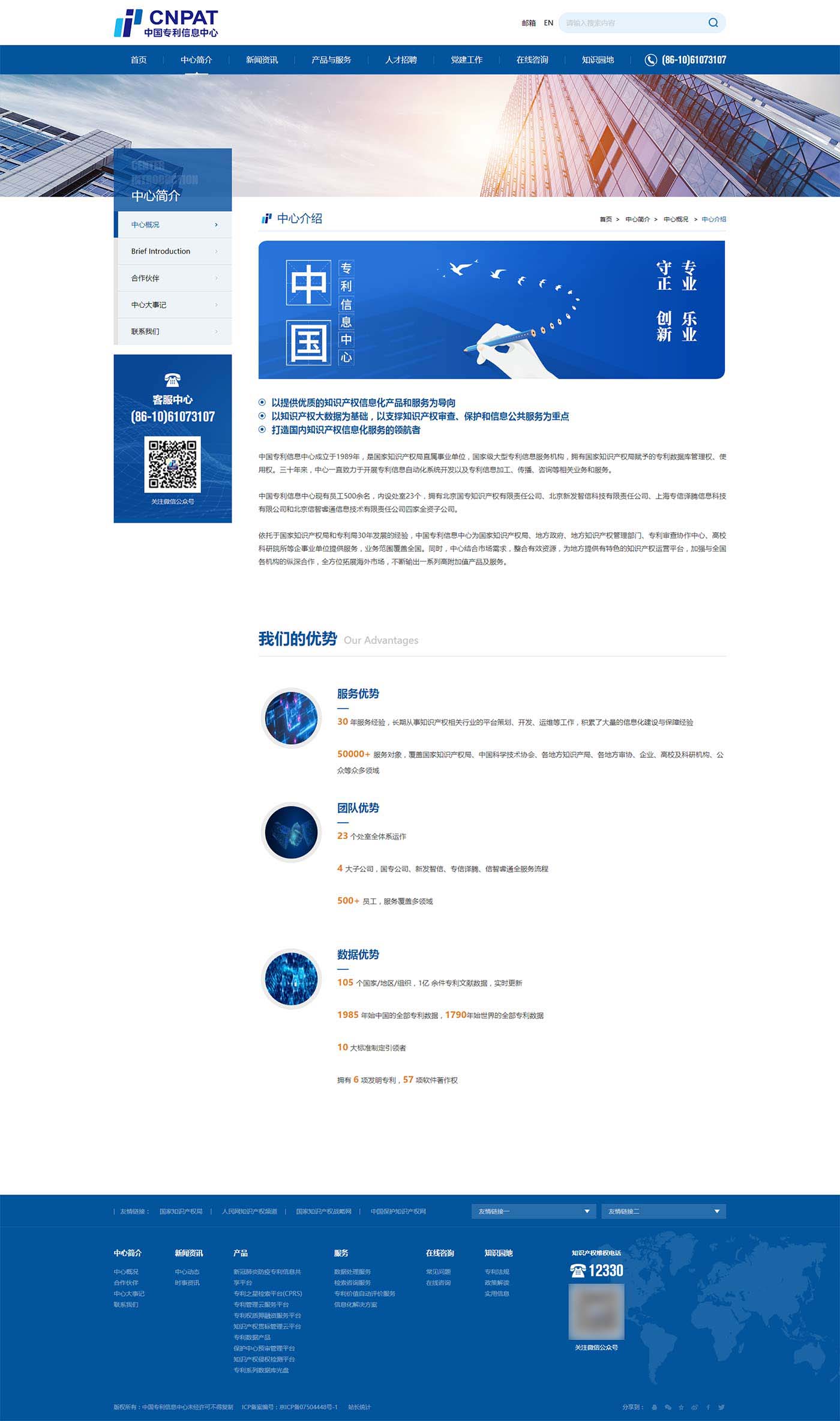 中國(guó)專(zhuān)利信息中心成立于1989年,是國(guó)家知識(shí)產(chǎn)權(quán)局直屬事業(yè)單位,國(guó)家級(jí)大型專(zhuān)利信息服務(wù)機(jī)構(gòu),擁有國(guó)家知識(shí)產(chǎn)權(quán)局賦予的專(zhuān)利數(shù)據(jù)庫(kù)管理權(quán)、使用權(quán)。三十年來(lái),中心一直致力于開(kāi)展專(zhuān)利信息自動(dòng)化系統(tǒng)開(kāi)發(fā)以及專(zhuān)利信息加工、傳播、咨詢(xún)等相關(guān)業(yè)務(wù)和服務(wù)。